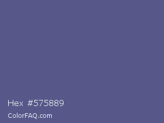 Hex #575889 Color is a normal blue color and the nearest color is Purple Navy #4e5180. Hex code #575889 and RGB value is rgb(87,88,137). In RGB color space, this color is composed of 34% red, 35% green, 54% blue, In CMYK color space, this color is composed of 36% cyan, 36% magenta, 0% yellow , 46% black , In HSL color space, this color has a hue angle of 239° , 22% saturation and 44% lightness.