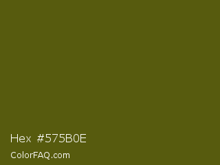 Hex #575b0e Color is a very dark yellow color and the nearest color is Saratoga #555b10. Hex code #575b0e and RGB value is rgb(87,91,14). In RGB color space, this color is composed of 34% red, 36% green, 5% blue, In CMYK color space, this color is composed of 4% cyan, 0% magenta, 85% yellow , 64% black , In HSL color space, this color has a hue angle of 63° , 73% saturation and 21% lightness.
