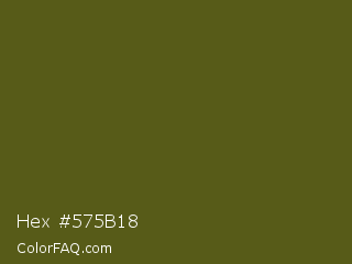 Hex #575b18 Color is a dark yellow color and the nearest color is Saratoga #555b10. Hex code #575b18 and RGB value is rgb(87,91,24). In RGB color space, this color is composed of 34% red, 36% green, 9% blue, In CMYK color space, this color is composed of 4% cyan, 0% magenta, 74% yellow , 64% black , In HSL color space, this color has a hue angle of 64° , 58% saturation and 23% lightness.