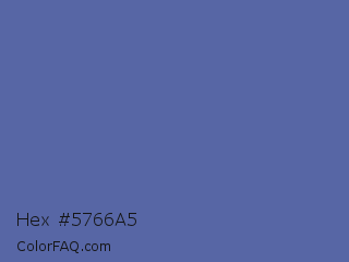 Hex #5766a5 Color is a normal blue color and the nearest color is Waikawa Gray #5a6e9c. Hex code #5766a5 and RGB value is rgb(87,102,165). In RGB color space, this color is composed of 34% red, 40% green, 65% blue, In CMYK color space, this color is composed of 47% cyan, 38% magenta, 0% yellow , 35% black , In HSL color space, this color has a hue angle of 228° , 31% saturation and 49% lightness.