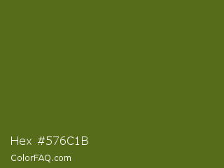 Hex #576c1b Color is a dark lime color and the nearest color is Fern Frond #657220. Hex code #576c1b and RGB value is rgb(87,108,27). In RGB color space, this color is composed of 34% red, 42% green, 11% blue, In CMYK color space, this color is composed of 19% cyan, 0% magenta, 75% yellow , 58% black , In HSL color space, this color has a hue angle of 76° , 60% saturation and 26% lightness.