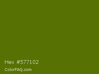 Hex #577102 Color is a dark lime color and the nearest color is Avocado #568203. Hex code #577102 and RGB value is rgb(87,113,2). In RGB color space, this color is composed of 34% red, 44% green, 1% blue, In CMYK color space, this color is composed of 23% cyan, 0% magenta, 98% yellow , 56% black , In HSL color space, this color has a hue angle of 74° , 97% saturation and 23% lightness.