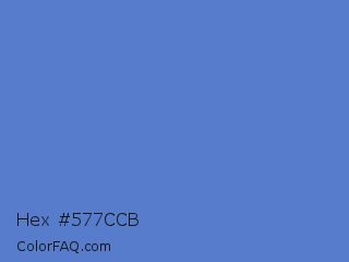 Hex #577ccb Color is a normal blue color and the nearest color is Indigo #4f69c6. Hex code #577ccb and RGB value is rgb(87,124,203). In RGB color space, this color is composed of 34% red, 49% green, 80% blue, In CMYK color space, this color is composed of 57% cyan, 39% magenta, 0% yellow , 20% black , In HSL color space, this color has a hue angle of 221° , 53% saturation and 57% lightness.