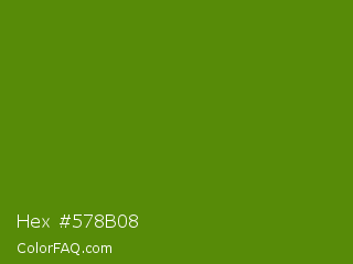 Hex #578b08 Color is a dark green color and the nearest color is Avocado #568203. Hex code #578b08 and RGB value is rgb(87,139,8). In RGB color space, this color is composed of 34% red, 55% green, 3% blue, In CMYK color space, this color is composed of 37% cyan, 0% magenta, 94% yellow , 45% black , In HSL color space, this color has a hue angle of 84° , 89% saturation and 29% lightness.