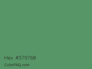 Hex #579768 Color is a normal green color and the nearest color is Fruit Salad #4f9d5d. Hex code #579768 and RGB value is rgb(87,151,104). In RGB color space, this color is composed of 34% red, 59% green, 41% blue, In CMYK color space, this color is composed of 42% cyan, 0% magenta, 31% yellow , 41% black , In HSL color space, this color has a hue angle of 136° , 27% saturation and 47% lightness.
