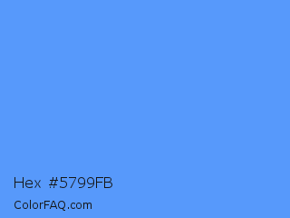 Hex #5799fb Color is a light blue color and the nearest color is Cornflower Blue #6495ed. Hex code #5799fb and RGB value is rgb(87,153,251). In RGB color space, this color is composed of 34% red, 60% green, 98% blue, In CMYK color space, this color is composed of 65% cyan, 39% magenta, 0% yellow , 2% black , In HSL color space, this color has a hue angle of 216° , 95% saturation and 66% lightness.
