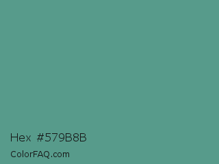 Hex #579b8b Color is a normal cyan color and the nearest color is Patina #639a8f. Hex code #579b8b and RGB value is rgb(87,155,139). In RGB color space, this color is composed of 34% red, 61% green, 55% blue, In CMYK color space, this color is composed of 44% cyan, 0% magenta, 10% yellow , 39% black , In HSL color space, this color has a hue angle of 166° , 28% saturation and 47% lightness.