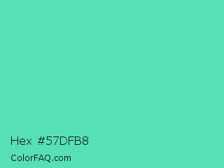 Hex #57dfb8 Color is a light green color and the nearest color is Medium Aquamarine #66ddaa. Hex code #57dfb8 and RGB value is rgb(87,223,184). In RGB color space, this color is composed of 34% red, 87% green, 72% blue, In CMYK color space, this color is composed of 61% cyan, 0% magenta, 17% yellow , 13% black , In HSL color space, this color has a hue angle of 163° , 68% saturation and 61% lightness.