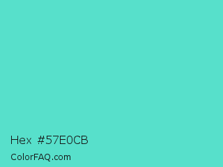Hex #57e0cb Color is a light cyan color and the nearest color is Medium Turquoise #48d1cc. Hex code #57e0cb and RGB value is rgb(87,224,203). In RGB color space, this color is composed of 34% red, 88% green, 80% blue, In CMYK color space, this color is composed of 61% cyan, 0% magenta, 9% yellow , 12% black , In HSL color space, this color has a hue angle of 171° , 69% saturation and 61% lightness.