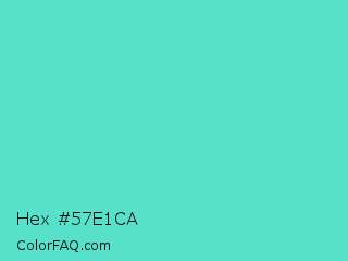 Hex #57e1ca Color is a light cyan color and the nearest color is Medium Turquoise #48d1cc. Hex code #57e1ca and RGB value is rgb(87,225,202). In RGB color space, this color is composed of 34% red, 88% green, 79% blue, In CMYK color space, this color is composed of 61% cyan, 0% magenta, 10% yellow , 12% black , In HSL color space, this color has a hue angle of 170° , 70% saturation and 61% lightness.