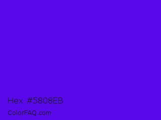 Hex #5808eb Color is a normal violet color and the nearest color is Han Purple #5218fa. Hex code #5808eb and RGB value is rgb(88,8,235). In RGB color space, this color is composed of 35% red, 3% green, 92% blue, In CMYK color space, this color is composed of 63% cyan, 97% magenta, 0% yellow , 8% black , In HSL color space, this color has a hue angle of 261° , 93% saturation and 48% lightness.