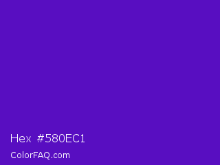 Hex #580ec1 Color is a normal violet color and the nearest color is Purple Heart Crayola #652dc1. Hex code #580ec1 and RGB value is rgb(88,14,193). In RGB color space, this color is composed of 35% red, 5% green, 76% blue, In CMYK color space, this color is composed of 54% cyan, 93% magenta, 0% yellow , 24% black , In HSL color space, this color has a hue angle of 265° , 86% saturation and 41% lightness.