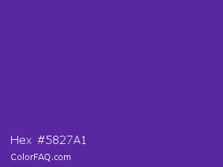 Hex #5827a1 Color is a normal violet color and the nearest color is Daisy Bush #4f2398. Hex code #5827a1 and RGB value is rgb(88,39,161). In RGB color space, this color is composed of 35% red, 15% green, 63% blue, In CMYK color space, this color is composed of 45% cyan, 76% magenta, 0% yellow , 37% black , In HSL color space, this color has a hue angle of 264° , 61% saturation and 39% lightness.