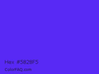 Hex #5828f5 Color is a normal indigo color and the nearest color is Han Purple #5218fa. Hex code #5828f5 and RGB value is rgb(88,40,245). In RGB color space, this color is composed of 35% red, 16% green, 96% blue, In CMYK color space, this color is composed of 64% cyan, 84% magenta, 0% yellow , 4% black , In HSL color space, this color has a hue angle of 254° , 91% saturation and 56% lightness.
