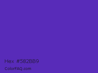 Hex #582bb9 Color is a normal indigo color and the nearest color is Purple Heart Crayola #652dc1. Hex code #582bb9 and RGB value is rgb(88,43,185). In RGB color space, this color is composed of 35% red, 17% green, 73% blue, In CMYK color space, this color is composed of 52% cyan, 77% magenta, 0% yellow , 27% black , In HSL color space, this color has a hue angle of 259° , 62% saturation and 45% lightness.