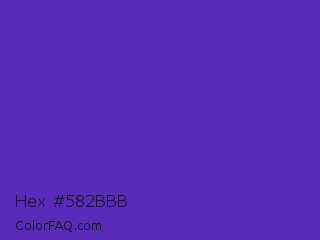 Hex #582bbb Color is a normal indigo color and the nearest color is Purple Heart Crayola #652dc1. Hex code #582bbb and RGB value is rgb(88,43,187). In RGB color space, this color is composed of 35% red, 17% green, 73% blue, In CMYK color space, this color is composed of 53% cyan, 77% magenta, 0% yellow , 27% black , In HSL color space, this color has a hue angle of 259° , 63% saturation and 45% lightness.