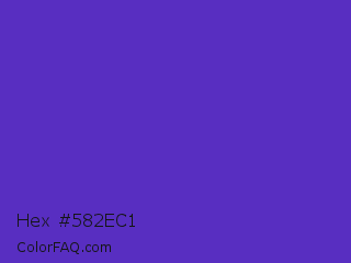 Hex #582ec1 Color is a normal indigo color and the nearest color is Purple Heart Crayola #652dc1. Hex code #582ec1 and RGB value is rgb(88,46,193). In RGB color space, this color is composed of 35% red, 18% green, 76% blue, In CMYK color space, this color is composed of 54% cyan, 76% magenta, 0% yellow , 24% black , In HSL color space, this color has a hue angle of 257° , 62% saturation and 47% lightness.