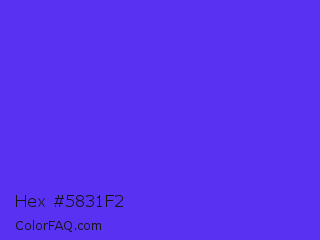Hex #5831f2 Color is a normal indigo color and the nearest color is Han Purple #5218fa. Hex code #5831f2 and RGB value is rgb(88,49,242). In RGB color space, this color is composed of 35% red, 19% green, 95% blue, In CMYK color space, this color is composed of 64% cyan, 80% magenta, 0% yellow , 5% black , In HSL color space, this color has a hue angle of 252° , 88% saturation and 57% lightness.