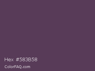 Hex #583b58 Color is a dark magenta color and the nearest color is English Violet #563c5c. Hex code #583b58 and RGB value is rgb(88,59,88). In RGB color space, this color is composed of 35% red, 23% green, 35% blue, In CMYK color space, this color is composed of 0% cyan, 33% magenta, 0% yellow , 65% black , In HSL color space, this color has a hue angle of 300° , 20% saturation and 29% lightness.