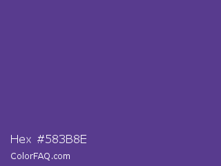 Hex #583b8e Color is a normal violet color and the nearest color is Blue Magenta Violet #553592. Hex code #583b8e and RGB value is rgb(88,59,142). In RGB color space, this color is composed of 35% red, 23% green, 56% blue, In CMYK color space, this color is composed of 38% cyan, 58% magenta, 0% yellow , 44% black , In HSL color space, this color has a hue angle of 261° , 41% saturation and 39% lightness.