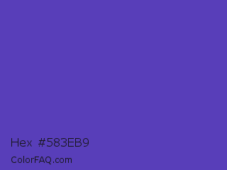 Hex #583eb9 Color is a normal indigo color and the nearest color is Ocean Blue #4f42b5. Hex code #583eb9 and RGB value is rgb(88,62,185). In RGB color space, this color is composed of 35% red, 24% green, 73% blue, In CMYK color space, this color is composed of 52% cyan, 66% magenta, 0% yellow , 27% black , In HSL color space, this color has a hue angle of 253° , 50% saturation and 48% lightness.