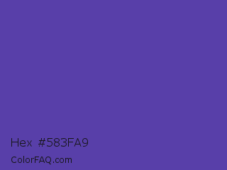 Hex #583fa9 Color is a normal indigo color and the nearest color is Plump Purple #5946b2. Hex code #583fa9 and RGB value is rgb(88,63,169). In RGB color space, this color is composed of 35% red, 25% green, 66% blue, In CMYK color space, this color is composed of 48% cyan, 63% magenta, 0% yellow , 34% black , In HSL color space, this color has a hue angle of 254° , 46% saturation and 45% lightness.