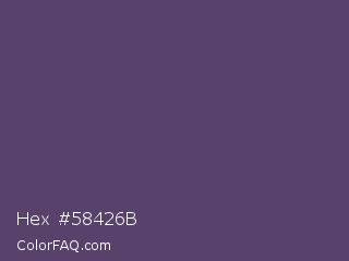 Hex #58426b Color is a normal purple color and the nearest color is Mulled Wine #4e4562. Hex code #58426b and RGB value is rgb(88,66,107). In RGB color space, this color is composed of 35% red, 26% green, 42% blue, In CMYK color space, this color is composed of 18% cyan, 38% magenta, 0% yellow , 58% black , In HSL color space, this color has a hue angle of 272° , 24% saturation and 34% lightness.