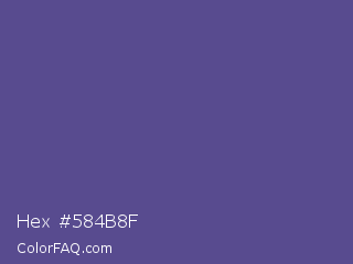 Hex #584b8f Color is a normal indigo color and the nearest color is Victoria #534491. Hex code #584b8f and RGB value is rgb(88,75,143). In RGB color space, this color is composed of 35% red, 29% green, 56% blue, In CMYK color space, this color is composed of 38% cyan, 48% magenta, 0% yellow , 44% black , In HSL color space, this color has a hue angle of 251° , 31% saturation and 43% lightness.