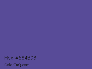 Hex #584b98 Color is a normal indigo color and the nearest color is Butterfly Bush #624e9a. Hex code #584b98 and RGB value is rgb(88,75,152). In RGB color space, this color is composed of 35% red, 29% green, 60% blue, In CMYK color space, this color is composed of 42% cyan, 51% magenta, 0% yellow , 40% black , In HSL color space, this color has a hue angle of 250° , 34% saturation and 45% lightness.