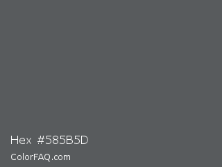 Hex #585b5d Color is a normal blue color and the nearest color is Chicago #5d5c58. Hex code #585b5d and RGB value is rgb(88,91,93). In RGB color space, this color is composed of 35% red, 36% green, 36% blue, In CMYK color space, this color is composed of 5% cyan, 2% magenta, 0% yellow , 64% black , In HSL color space, this color has a hue angle of 204° , 3% saturation and 35% lightness.