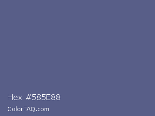 Hex #585e88 Color is a normal blue color and the nearest color is UCLA Blue #536895. Hex code #585e88 and RGB value is rgb(88,94,136). In RGB color space, this color is composed of 35% red, 37% green, 53% blue, In CMYK color space, this color is composed of 35% cyan, 31% magenta, 0% yellow , 47% black , In HSL color space, this color has a hue angle of 233° , 21% saturation and 44% lightness.