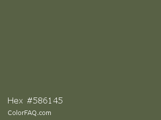 Hex #586145 Color is a normal lime color and the nearest color is Axolotl #4e6649. Hex code #586145 and RGB value is rgb(88,97,69). In RGB color space, this color is composed of 35% red, 38% green, 27% blue, In CMYK color space, this color is composed of 9% cyan, 0% magenta, 29% yellow , 62% black , In HSL color space, this color has a hue angle of 79° , 17% saturation and 33% lightness.