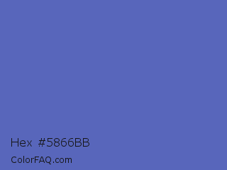Hex #5866bb Color is a normal blue color and the nearest color is Indigo #4f69c6. Hex code #5866bb and RGB value is rgb(88,102,187). In RGB color space, this color is composed of 35% red, 40% green, 73% blue, In CMYK color space, this color is composed of 53% cyan, 45% magenta, 0% yellow , 27% black , In HSL color space, this color has a hue angle of 232° , 42% saturation and 54% lightness.