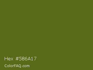 Hex #586a17 Color is a dark lime color and the nearest color is Saratoga #555b10. Hex code #586a17 and RGB value is rgb(88,106,23). In RGB color space, this color is composed of 35% red, 42% green, 9% blue, In CMYK color space, this color is composed of 17% cyan, 0% magenta, 78% yellow , 58% black , In HSL color space, this color has a hue angle of 73° , 64% saturation and 25% lightness.