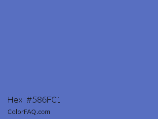 Hex #586fc1 Color is a normal blue color and the nearest color is Indigo #4f69c6. Hex code #586fc1 and RGB value is rgb(88,111,193). In RGB color space, this color is composed of 35% red, 44% green, 76% blue, In CMYK color space, this color is composed of 54% cyan, 42% magenta, 0% yellow , 24% black , In HSL color space, this color has a hue angle of 227° , 46% saturation and 55% lightness.