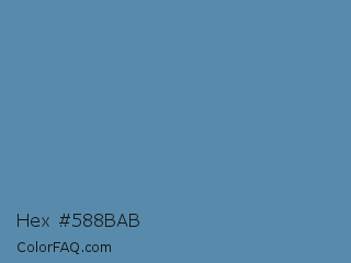 Hex #588bab Color is a normal blue color and the nearest color is Air Force Blue RAF #5d8aa8. Hex code #588bab and RGB value is rgb(88,139,171). In RGB color space, this color is composed of 35% red, 55% green, 67% blue, In CMYK color space, this color is composed of 49% cyan, 19% magenta, 0% yellow , 33% black , In HSL color space, this color has a hue angle of 203° , 33% saturation and 51% lightness.