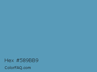 Hex #589bb9 Color is a normal blue color and the nearest color is Hippie Blue #589aaf. Hex code #589bb9 and RGB value is rgb(88,155,185). In RGB color space, this color is composed of 35% red, 61% green, 73% blue, In CMYK color space, this color is composed of 52% cyan, 16% magenta, 0% yellow , 27% black , In HSL color space, this color has a hue angle of 199° , 41% saturation and 54% lightness.