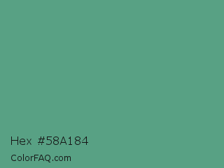 Hex #58a184 Color is a normal green color and the nearest color is Shiny Shamrock #5fa778. Hex code #58a184 and RGB value is rgb(88,161,132). In RGB color space, this color is composed of 35% red, 63% green, 52% blue, In CMYK color space, this color is composed of 45% cyan, 0% magenta, 18% yellow , 37% black , In HSL color space, this color has a hue angle of 156° , 29% saturation and 49% lightness.