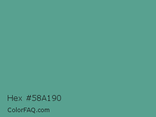 Hex #58a190 Color is a normal cyan color and the nearest color is Polished Pine #5da493. Hex code #58a190 and RGB value is rgb(88,161,144). In RGB color space, this color is composed of 35% red, 63% green, 56% blue, In CMYK color space, this color is composed of 45% cyan, 0% magenta, 11% yellow , 37% black , In HSL color space, this color has a hue angle of 166° , 29% saturation and 49% lightness.