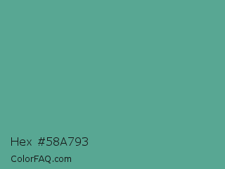 Hex #58a793 Color is a normal cyan color and the nearest color is Polished Pine #5da493. Hex code #58a793 and RGB value is rgb(88,167,147). In RGB color space, this color is composed of 35% red, 65% green, 58% blue, In CMYK color space, this color is composed of 47% cyan, 0% magenta, 12% yellow , 35% black , In HSL color space, this color has a hue angle of 165° , 31% saturation and 50% lightness.