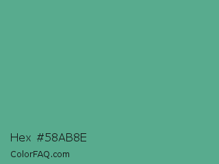 Hex #58ab8e Color is a normal green color and the nearest color is Polished Pine #5da493. Hex code #58ab8e and RGB value is rgb(88,171,142). In RGB color space, this color is composed of 35% red, 67% green, 56% blue, In CMYK color space, this color is composed of 49% cyan, 0% magenta, 17% yellow , 33% black , In HSL color space, this color has a hue angle of 159° , 33% saturation and 51% lightness.