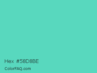 Hex #58d8be Color is a normal cyan color and the nearest color is Medium Turquoise #48d1cc. Hex code #58d8be and RGB value is rgb(88,216,190). In RGB color space, this color is composed of 35% red, 85% green, 75% blue, In CMYK color space, this color is composed of 59% cyan, 0% magenta, 12% yellow , 15% black , In HSL color space, this color has a hue angle of 168° , 62% saturation and 60% lightness.