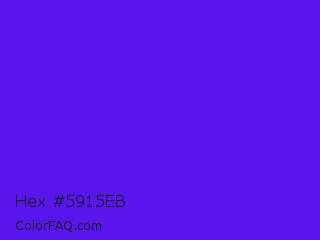 Hex #5915eb Color is a normal indigo color and the nearest color is Han Purple #5218fa. Hex code #5915eb and RGB value is rgb(89,21,235). In RGB color space, this color is composed of 35% red, 8% green, 92% blue, In CMYK color space, this color is composed of 62% cyan, 91% magenta, 0% yellow , 8% black , In HSL color space, this color has a hue angle of 259° , 84% saturation and 50% lightness.