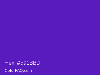 Hex #591bbd Color is a normal violet color and the nearest color is Purple Heart Crayola #652dc1. Hex code #591bbd and RGB value is rgb(89,27,189). In RGB color space, this color is composed of 35% red, 11% green, 74% blue, In CMYK color space, this color is composed of 53% cyan, 86% magenta, 0% yellow , 26% black , In HSL color space, this color has a hue angle of 263° , 75% saturation and 42% lightness.