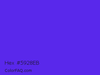 Hex #5928eb Color is a normal indigo color and the nearest color is Han Purple #5218fa. Hex code #5928eb and RGB value is rgb(89,40,235). In RGB color space, this color is composed of 35% red, 16% green, 92% blue, In CMYK color space, this color is composed of 62% cyan, 83% magenta, 0% yellow , 8% black , In HSL color space, this color has a hue angle of 255° , 83% saturation and 54% lightness.
