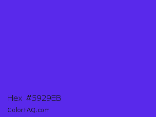 Hex #5929eb Color is a normal indigo color and the nearest color is Han Purple #5218fa. Hex code #5929eb and RGB value is rgb(89,41,235). In RGB color space, this color is composed of 35% red, 16% green, 92% blue, In CMYK color space, this color is composed of 62% cyan, 83% magenta, 0% yellow , 8% black , In HSL color space, this color has a hue angle of 255° , 83% saturation and 54% lightness.