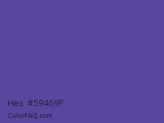 Hex #59469f Color is a normal indigo color and the nearest color is Butterfly Bush #624e9a. Hex code #59469f and RGB value is rgb(89,70,159). In RGB color space, this color is composed of 35% red, 27% green, 62% blue, In CMYK color space, this color is composed of 44% cyan, 56% magenta, 0% yellow , 38% black , In HSL color space, this color has a hue angle of 253° , 39% saturation and 45% lightness.