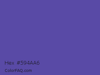Hex #594aa6 Color is a normal indigo color and the nearest color is Plump Purple #5946b2. Hex code #594aa6 and RGB value is rgb(89,74,166). In RGB color space, this color is composed of 35% red, 29% green, 65% blue, In CMYK color space, this color is composed of 46% cyan, 55% magenta, 0% yellow , 35% black , In HSL color space, this color has a hue angle of 250° , 38% saturation and 47% lightness.