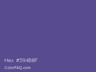Hex #594b8f Color is a normal indigo color and the nearest color is Victoria #534491. Hex code #594b8f and RGB value is rgb(89,75,143). In RGB color space, this color is composed of 35% red, 29% green, 56% blue, In CMYK color space, this color is composed of 38% cyan, 48% magenta, 0% yellow , 44% black , In HSL color space, this color has a hue angle of 252° , 31% saturation and 43% lightness.