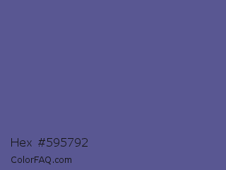 Hex #595792 Color is a normal indigo color and the nearest color is Butterfly Bush #624e9a. Hex code #595792 and RGB value is rgb(89,87,146). In RGB color space, this color is composed of 35% red, 34% green, 57% blue, In CMYK color space, this color is composed of 39% cyan, 40% magenta, 0% yellow , 43% black , In HSL color space, this color has a hue angle of 242° , 25% saturation and 46% lightness.
